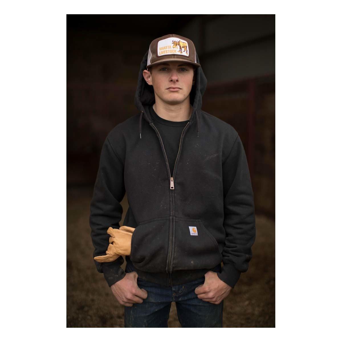 The Men's Carhartt Paxton Rain Defender Full Zip Hoodie is the everyday essential, delivering the familiar comfort of a favorite zip-up hoodie with the added benefit of elemental protection. This versatile heavyweight hoodie is treated with Rain Defender® DWR technology, which makes light rain bead up and roll right off, keeping you dry and moving in unpredictable weather. The jersey-lined hood and rib-knit cuffs and waist work together to seal out the cold, while the antique-finish brass zipper provides classic, rugged durability. Functionality is key with two front handwarmer pockets, one of which includes a hidden security pocket to keep small valuables safe while on the job.