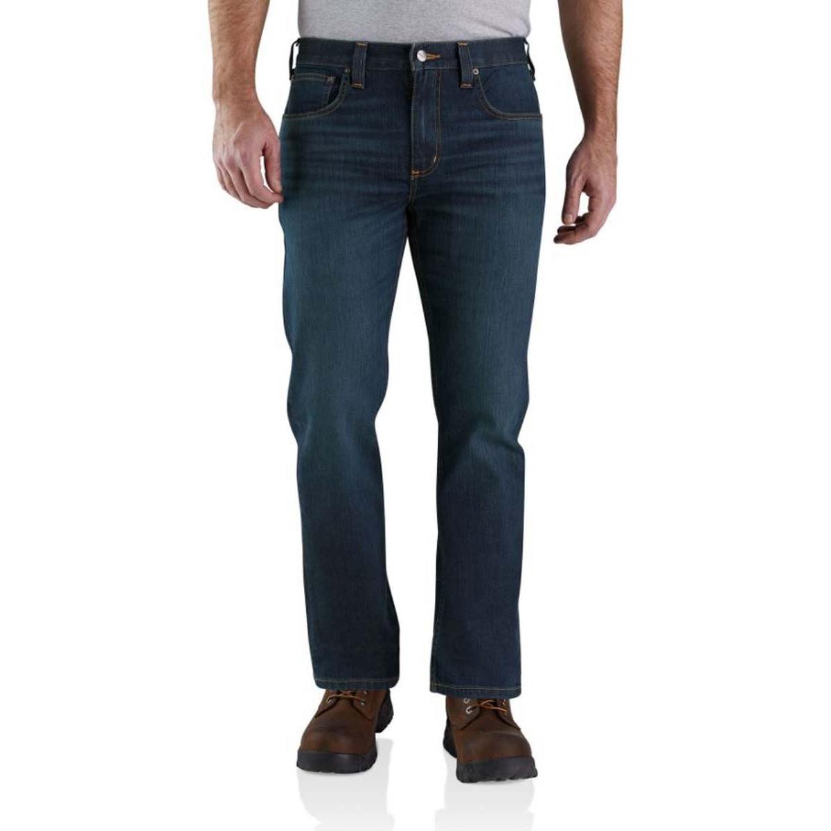 The Carhartt Rugged Flex Relaxed Straight Men's Jeans are tough enough to withstand 14-hour workdays. These men's Carhartt jeans feature Rugged Flex® technology which allows for stretch making it easier to move, while the durable, thick fabric keeps your legs protected. These men's work jeans have a straight leg that fits over your work boots, and the relaxed fit through the seat and thigh offers a more comfortable feel on the job. Make sure you're ready for the workday ahead with the Carhartt Rugged Flex Relaxed Straight Men's Jeans.