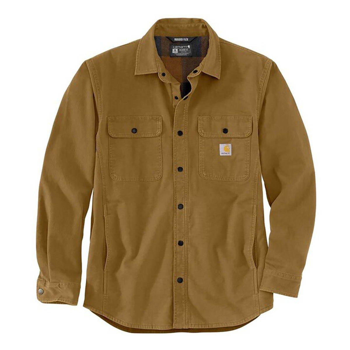 Upgrade your wardrobe with the Men's Carhartt Rugged Flex Relaxed Fit Canvas Fleece-Lined Snap-Front Long Sleeve Button Up Shirt. This shirt is not just a piece of clothing, it's a testament to strength, durability, and comfort. Crafted from 98% Cotton and 2% Spandex Canvas, this shirt showcases resilience and flexibility, allowing you to move effortlessly throughout your day. Whether you're working on a construction site or enjoying a casual day out, the Carhartt Rugged Flex Shirt is designed to withstand the toughest conditions while providing you with maximum comfort.