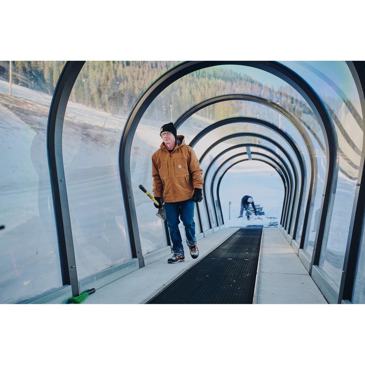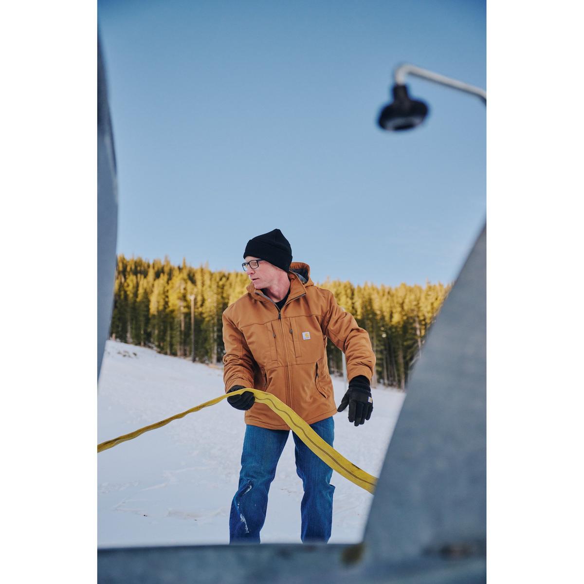 Work or play, when the weather turns damp and windy, this men's Super Dux® insulated tech jacket keeps you warm and mobile. It's named after the original Carhartt hunting gear from the 1930s, but it features modern insulation and a lightweight, low-profile feel that flexes for an unrestricted feel. Back pleats and underarm gussets make sure you always have room to swing an axe or reach over your head. It's also wind-resistant, sheds light rain, and is even more abrasion-resistant than our traditional duck canvas.