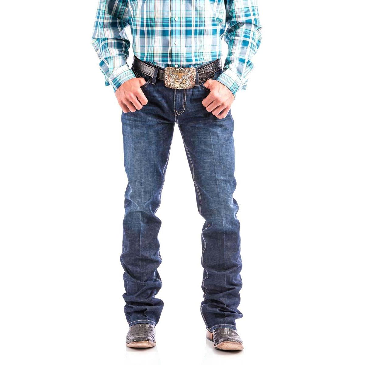 The Men's Cinch Ian Relaxed Fit Straight Jeans are the perfect jeans for the modern man. Constructed of a cotton-polyester blend, these jeans are both comfortable and durable. The relaxed fit and straight leg provide a flattering look that pairs easily with almost any outfit. The waistband has belt loops, a zipper fly, and a button closure, while the traditional five pocket styling offers plenty of storage. The medium wash of these jeans also add a touch of style to your look. Whether you're heading out for a night on the town or just running errands, these jeans will have you looking and feeling your best.