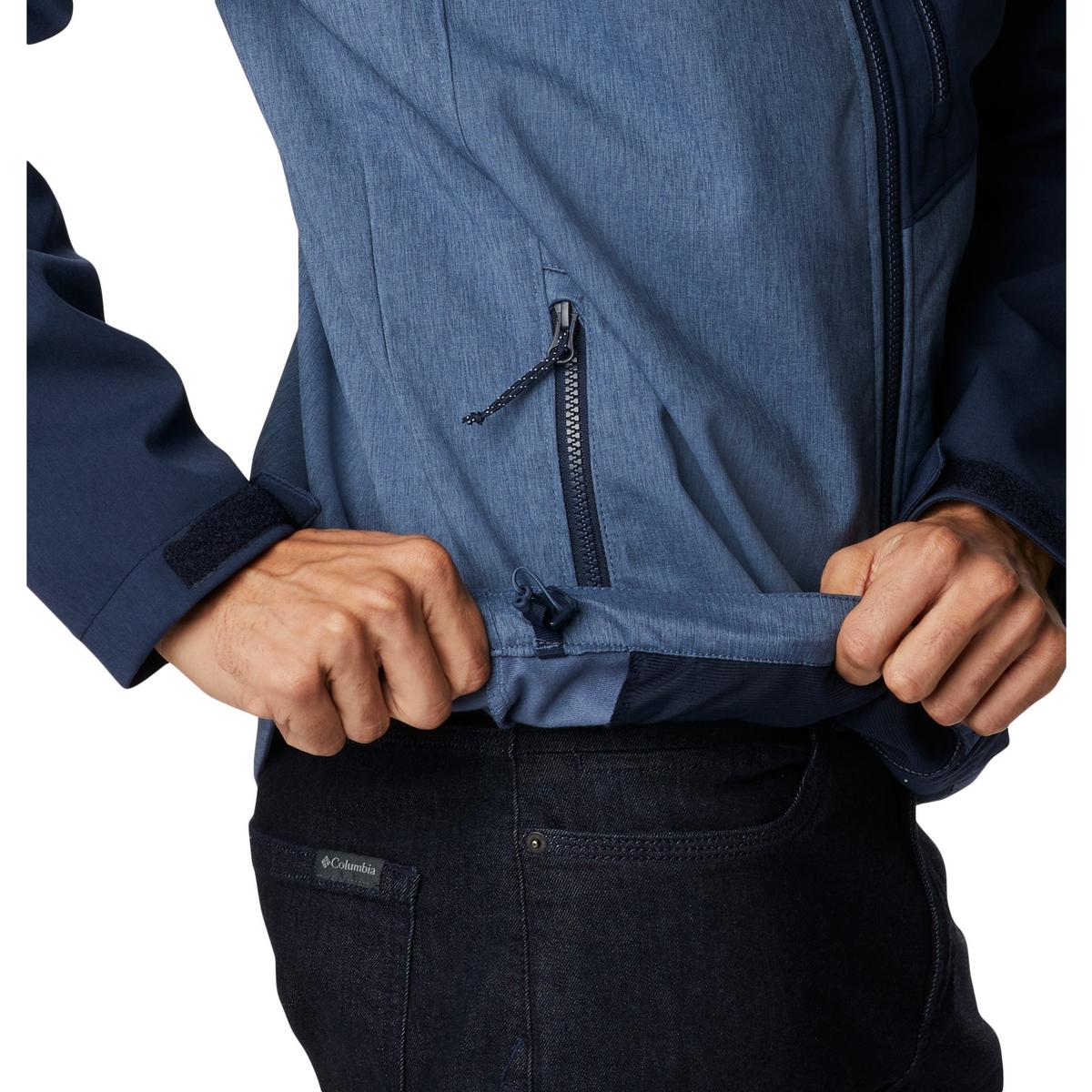 The Men's Columbia Cruiser Valley Softshell Jacket will keep you warm and dry in any season. This lightweight, comfortable jacket features a waterproof-breathable construction, allowing you to stay dry in wet conditions. The Omni-Heat thermal reflective lining helps to keep you warm and insulated, while the abrasion-resistant chin guard and adjustable hood provide additional protection from the elements. With its adjustable hem and cuffs, you'll get a customized fit every time. Plus, the stylish design of this jacket will keep you looking great in any setting. With the Men's Columbia Cruiser Valley Softshell Jacket, you can stay warm and dry, no matter the weather.