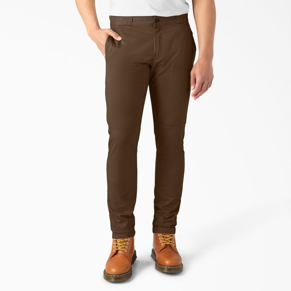 Super durable and super comfortable--we're super confident about making these claims about our Dickies Men's Skinny Fit Double Knee Work Pants. Wear and tear? No problem. They feature a double layer of material around the knees, providing much-needed protection at the workplace. Lots of moving around at work? We've got you covered. The FLEX stretch fabric in these pants gives you plenty of room to move at work. Stains and wrinkles? These work pants are made with material that resists them both. So you can go about your day low-maintenance and worry-free.