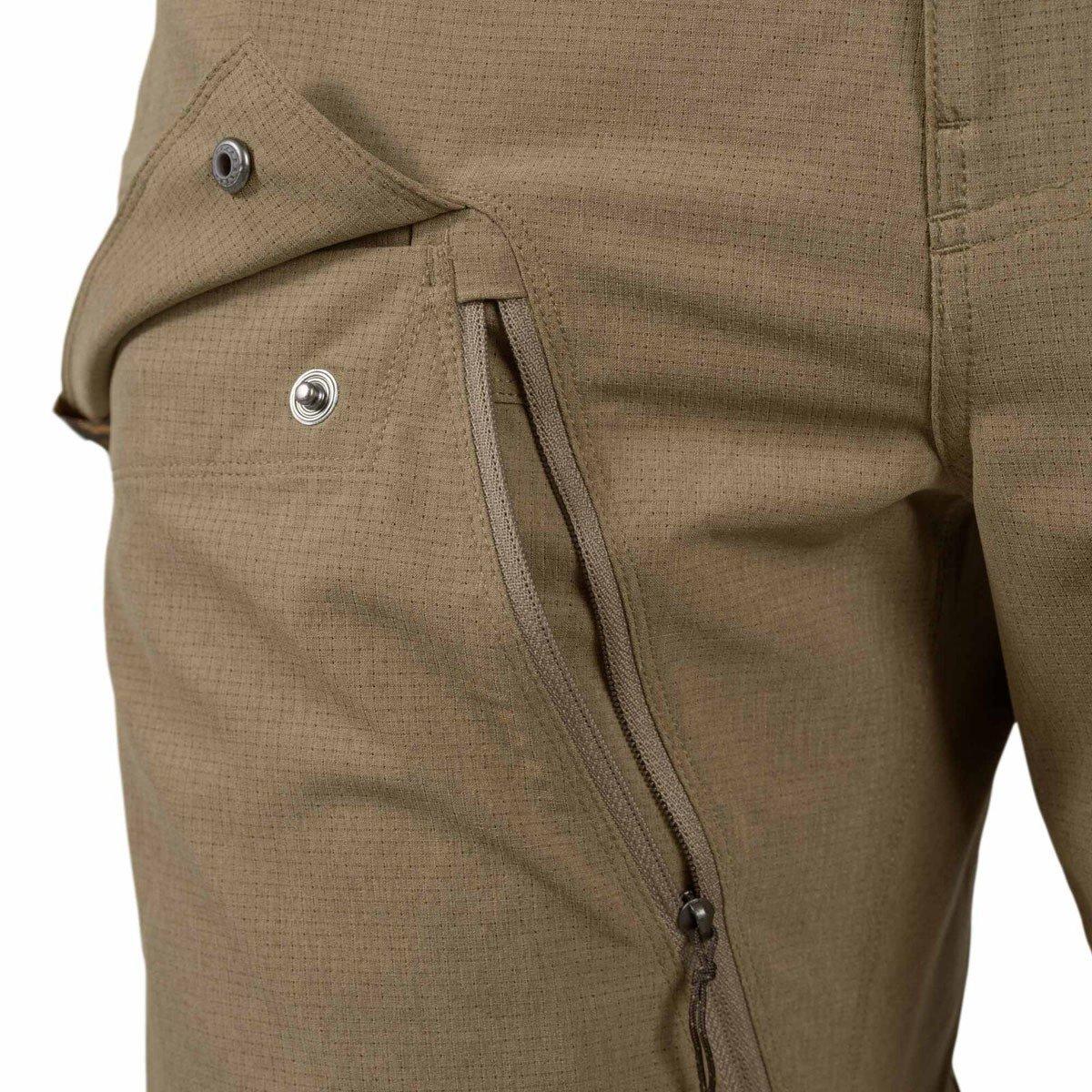 The Trace Pant features top and side entry cargo pockets that are accessible while sitting. The zippered side-entry cargo pocket also doubles as a second vent for maximum airflow when used in conjunction with the hip vents. Zippered rear wallet pockets provide additional secure storage. Jean-style front pockets have a built-in knife sleeve for easy access to your pocket knife, and the integrated low-profile belt is pack-belt compatible.