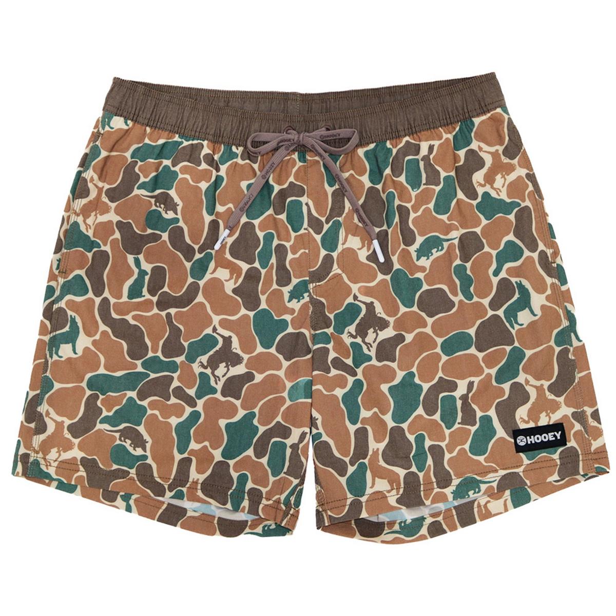 Big Wake, Men's Brown / Green Volley Boardshorts with Camo Pattern All Over and 6.5 Inseam - M