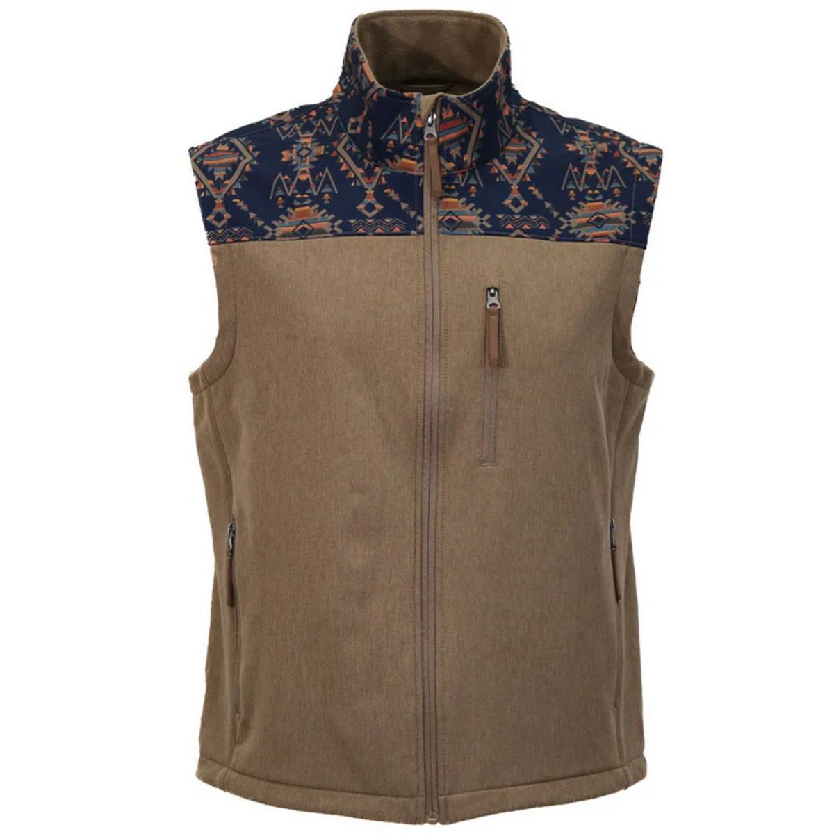 This Hooey Brown Aztec men's softshell fleece vest is perfect for cool or cold weather. Combat the wind or rain with this durable jacket, featuring multifunctional hidden pockets and a headphone holster. 96% Polyester 4% Polyurethane. Casual wear for your everyday tasks.