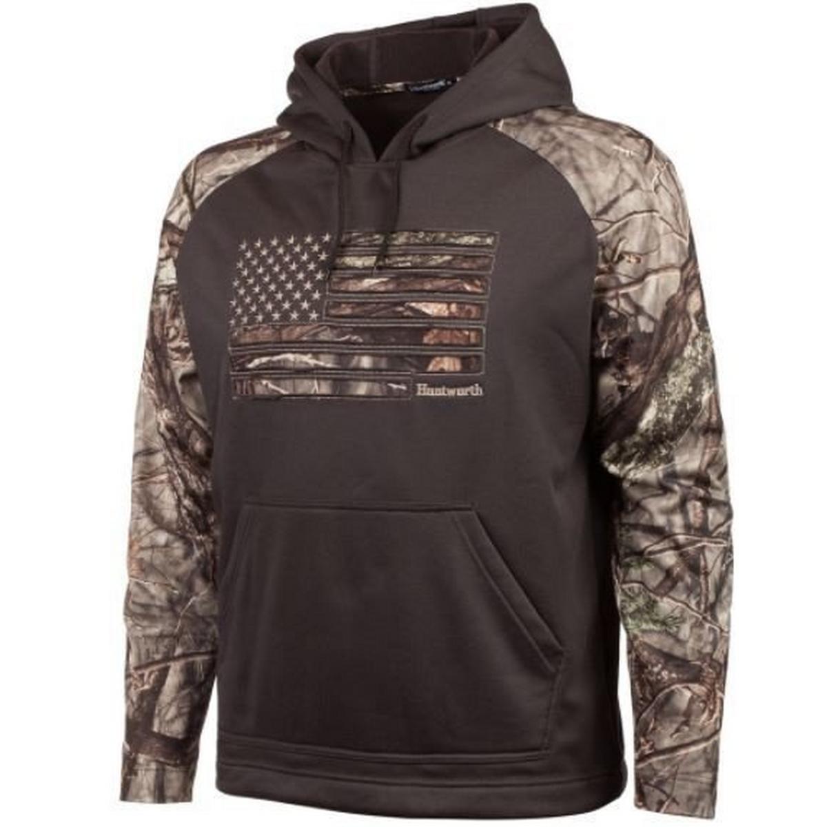 Show your patriotic side with this stylish hoodie. Made with a 260g 2-way stretch knit jersey, it has comfort and rugged good looks. The edgy cut outs frame a cool embroidered camo flag that is always in style. A 3-piece hood gives you great visibility with coverage, and the front kangaroo pocket gives you roomy space. The charcoal gray background goes perfectly with the camo accenting.