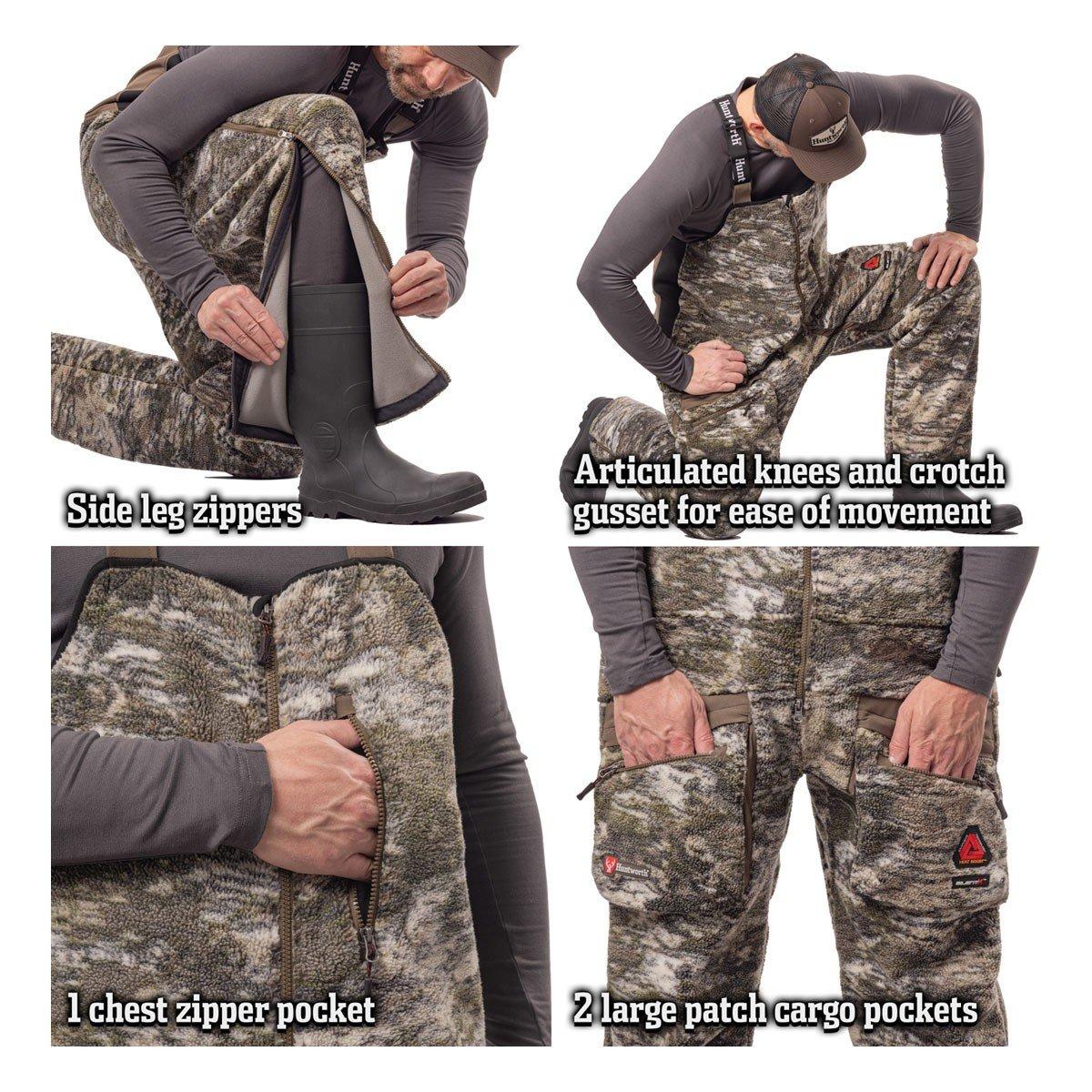 Quiet and compactable, these bonded Berber fleece hunting bib overalls are bonded a windproof film and Heat Boost® enhanced fleece for the ultimate warmth. Knitting graphene yarn into the fleece imparts the thermal conductivity, moisture wicking, and odor reducing properties inherent to graphene. The graphene harnesses your body’s energy, absorbs the heat and releases it back, surrounding you in radiant warmth, even on extremely cold days. Part of the SilentX™ line of clothing, the Saginaw features construction techniques to eliminate the noises associated with windproof cold weather clothing. Multiple pockets keep your gear on hand, and no-buckle adjustable suspenders provide a comfortable and perfect fit. The articulated knees, crotch gusset, and side and back panels keep them flexible and comfortable. Long leg zippers allow for easy venting or layering in the field. Ready to conquer the cold with lasting heat.