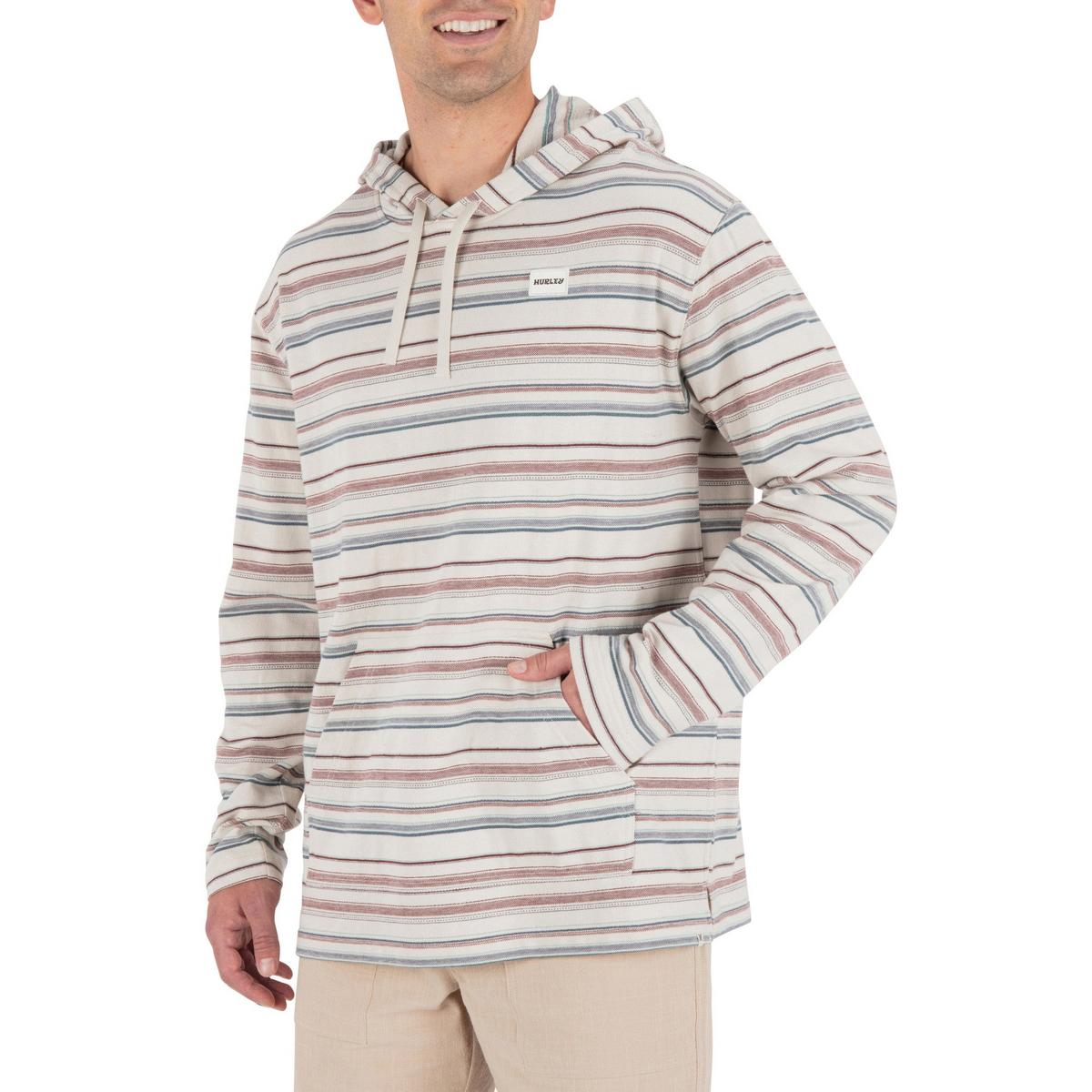 •100% cotton. •230gsm french terry fabric. •Jacquard stripe technique. •DTM drawcords and kangaroo pocket. •Side seam slits. •Garment wash for added softness. •Naturals patch at chest. •Naturals clip label and back neck woven label.