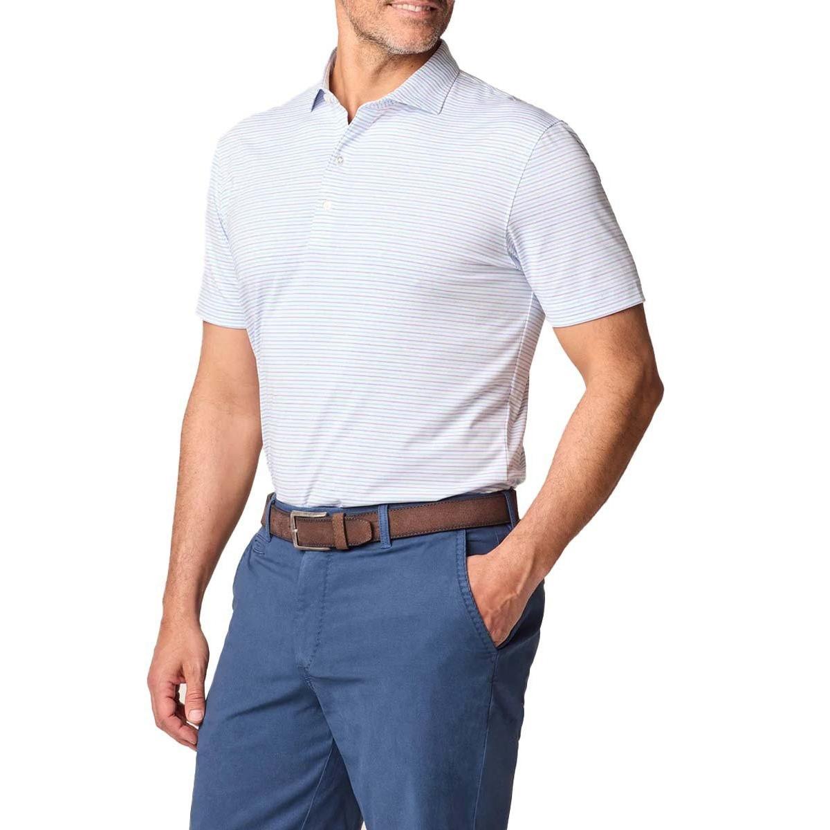 The perfect jersey polo for a sunny day on the course: lightweight, breathable, moisture-wicking and UPF 50. Our Vik Polo features a heathered stripe pattern that looks sharp and goes well with any shorts or pants.