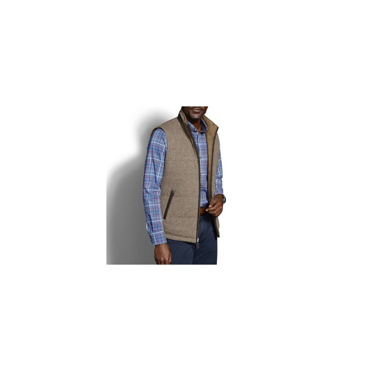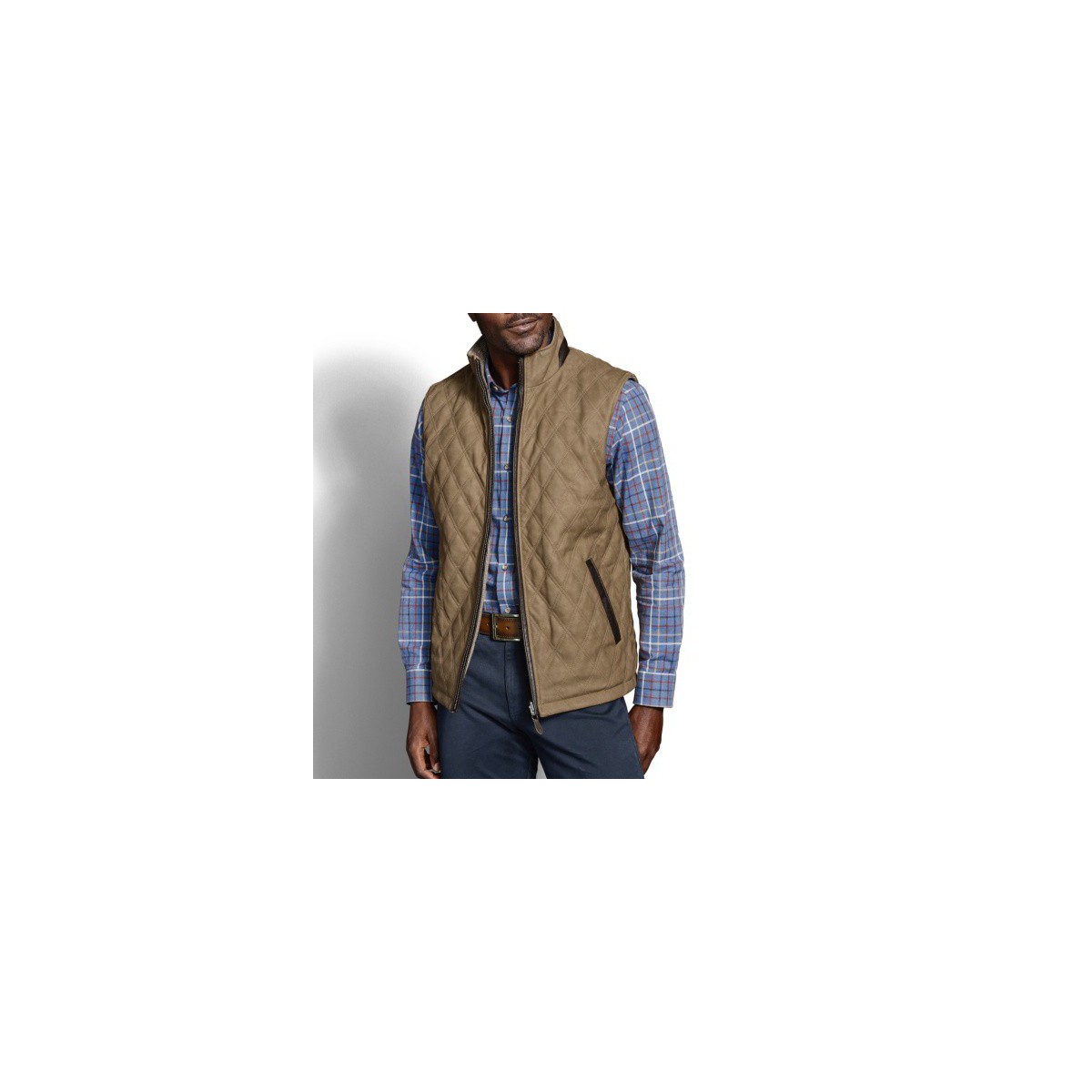 •Quilted side with welt pockets, Plaid side with zip pockets; both trimmed with faux leather.