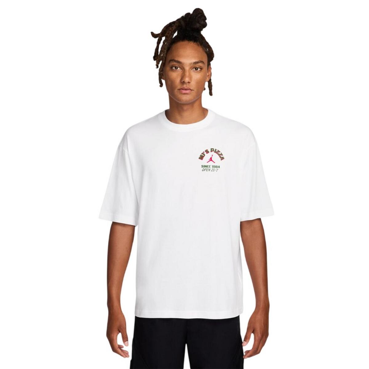 The Men's Jordan MJ's Pizza T-Shirt is super comfortable and made from lightweight fabric to enhance overall breathability. Featuring the Jordan logo, the Men's Jordan MJ's Pizza T-Shirt is a great way to show brand loyalty too!