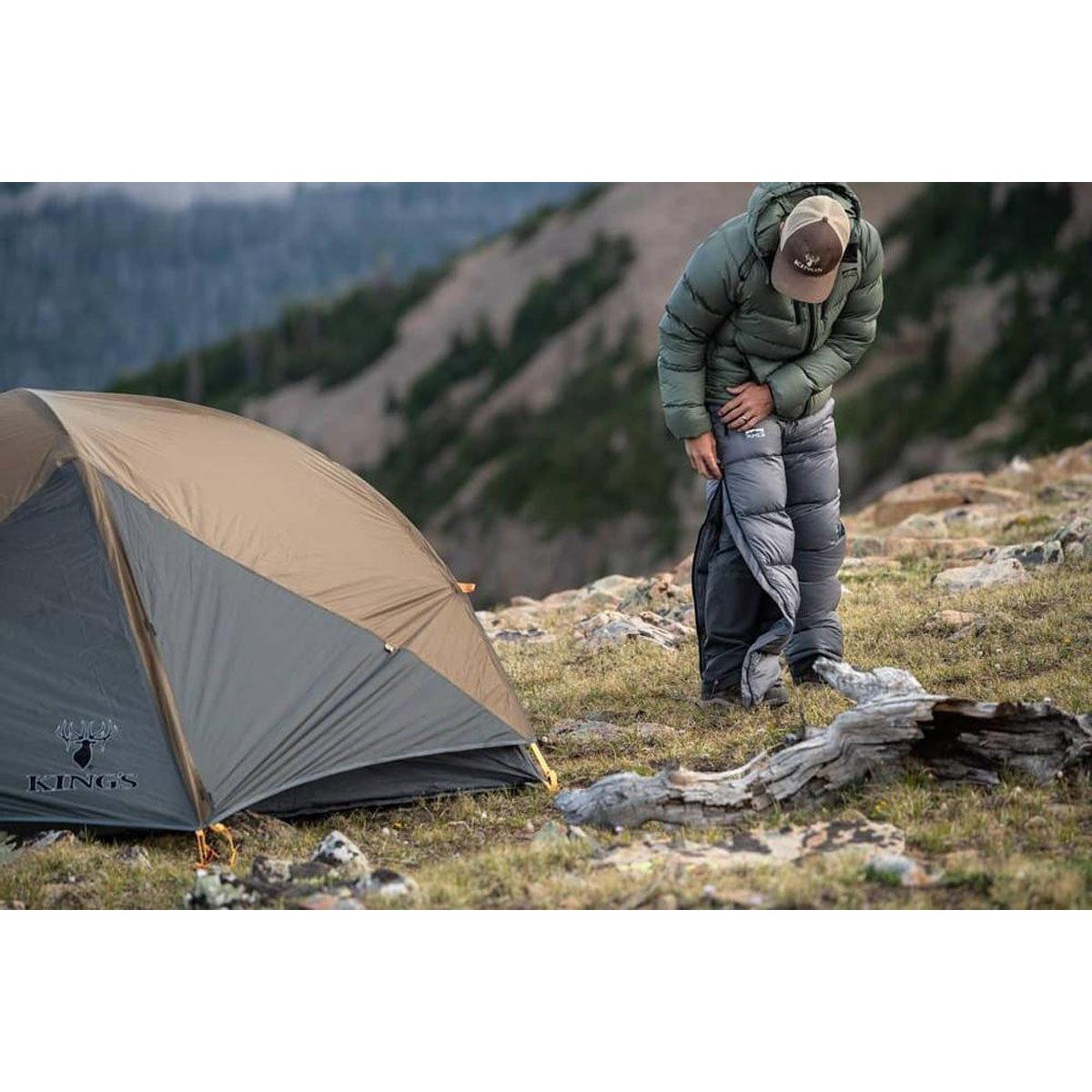 We’ve also added the most durable lightweight windproof nylon outer fabric along with a DWR finish to protect you ever more when the conditions are extreme. This pant packs into its left side pocket for easy storage and only weighs less than a pound. It has a comfort stretch waist band with belt loops, ¾ length zippers on the left and right side, zippers side pockets, and the ability to pack into its left side pocket for easy storage. Finished with XKG and King’s logoing on the pull tabs, hip and calf. This pant will thrive during long glassing sessions, testing days in the tree stand, and sleeping or lounging around camp.