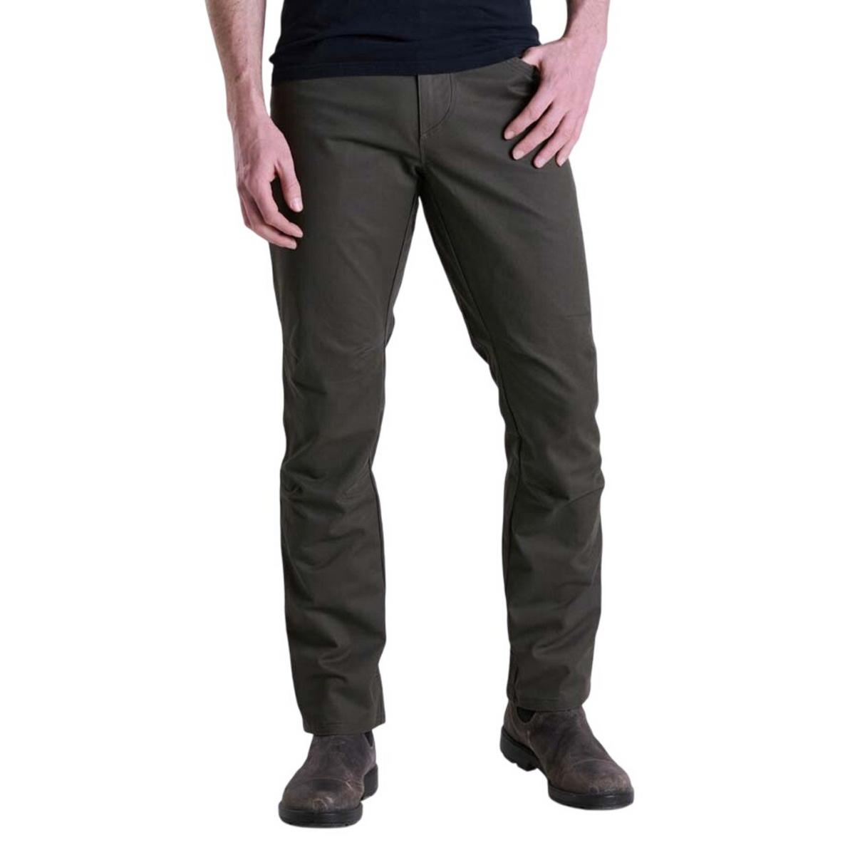 The KUHL Free Rydr Men's Pant offers a sleek, slim silhouette for casual wear. Constructed from soft, breathable fabric with spandex, these men's casual pants offer comfortable, unrestricted movement. The reinforced pockets and bottom cuffs reduce wear and increase durability. For convenience, these KUHL pants feature a 5-pocket design with a hidden phone pocket. For a lived-in look, these men's casual pants are vintage patina dyed and river washed. For a casual pant to wear hiking or at work, try the KUHL Free Rydr Men's Pant.
