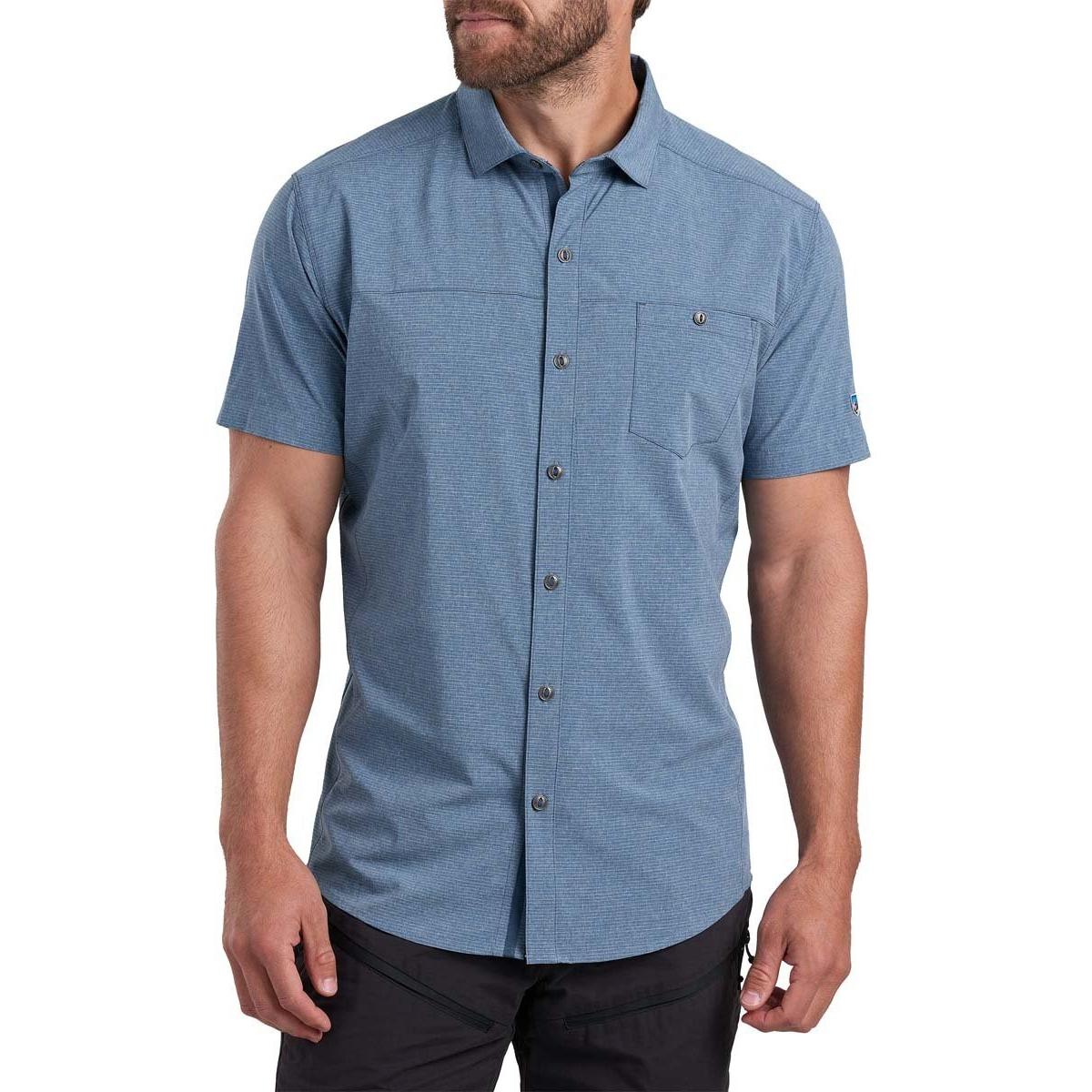 The Men's KUHL Optimizr Short Sleeve Shirt is great to wear from the office to the trails. The KUHL Optimizer shirt is made from durable yet breathable fabric that's quick-drying and moisture-wicking for maximum comfort. Plus, the KUHL Optimizer shirt offers four-way stretch for mobility in every direction. With the reduced collar, you'll enjoy a more modern look, while the UPF 40 sun protection within the KUHL Optimizer shirt reduces your chances of getting a sunburn. Be ready for work or your next adventure with the Men's KUHL Optimizr Short Sleeve Shirt.