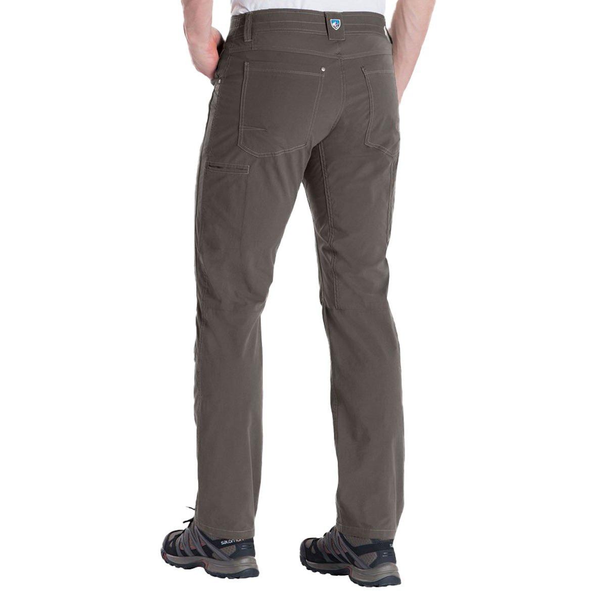 The Men's KUHL Radikl Pant offers the comfort of sweatpants in the style of casual pants. These hiking pants for men feature a gusseted fit for freedom of movement and a Free Ryde™ Waist that follows the natural rise of the hips. The Men's KUHL Radikl Pants feature knit fabric placed in panels below the knee, waist, back, yoke, and gusset to create unmatched flexibility. Complete with 7 pockets: 2 front jean style, 1 coin, 2 back, 1 stealth cell phone, and 1 3D gusseted pocket, the Men's KUHL Radikl Pant are just what you need.