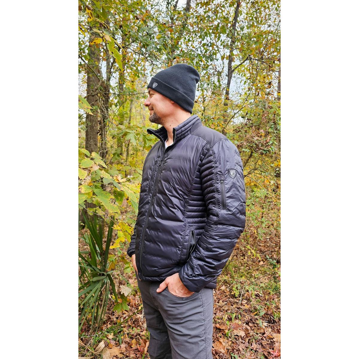 The Men's KUHL Spyfire Jacket keeps you warm whether you're cross-country skiing or walking around town. The KUHL Spyfire Jacket provides lightweight warmth with down insulation and a water-resistant shell. With large baffles around your core, you'll stay extra warm, while the smaller baffles on the side and arms ensure less bulk. The Men's KUHL Spyfire Jacket even features a reinforced yoke for maximum durability in high-abrasion areas. Plus, with multiple zippered pockets, you'll enjoy plenty of storage for your outdoor adventures. Make sure you're ready for the cooler weather with the Men's KUHL Spyfire Jacket.