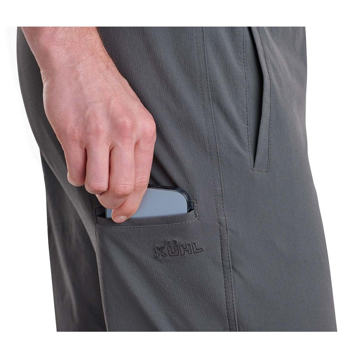 The Men's Kuhl Suppressor Shorts are the perfect choice for your next outdoor adventure. Crafted from a lightweight, breathable, and stretchy fabric, these shorts are designed to keep you comfortable in any situation. They have a pull-on waistband with an external drawcord for a secure fit and a mesh internal waistband for extra breathability. The water-resistance and abrasion-resistance fabric also make these shorts durable and long-lasting. Plus, you can store small items in the hidden back pocket or the two drop-in cell pockets. Whether you're running, hiking, or camping, our Men's Kuhl Suppressor Shorts are a perfect choice.