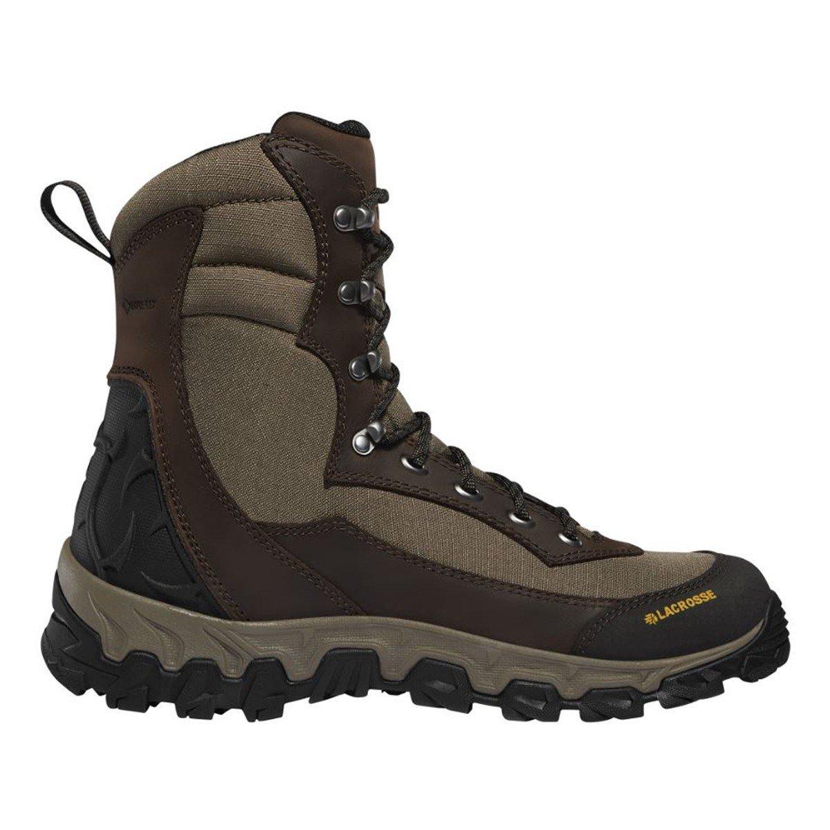 The Men's LaCrosse Lodestar Boot is packed with premium components to offer the hunter. The Nubuck Leather Upper offers the hunter with an abrasion-resistant material that promises rugged durability. A GORE-TEX waterproof breathable lining gives the hunter a comfortable fit that keeps the foot dry. The exclusive Vibram® outsole with Omni-directional lugs provides superior traction in any condition. Backing this, the Eva Midsole delivers superior cushioning and shock absorption crossing tough landscapes. Adding the Hexguard Toe offers the hunter impact resistance and lasting durability throughout the hunt. A Durafit Heel Cup locks your heel in place for a snug, secure fit. Serious stability and comfort are provided through our new lightweight, oversized X-shank, dispersing weight evenly underfoot and offering support on untamed terrain. Feature-rich and ready to hunt, the Lodestar is an ideal boot for navigating the backcountry.