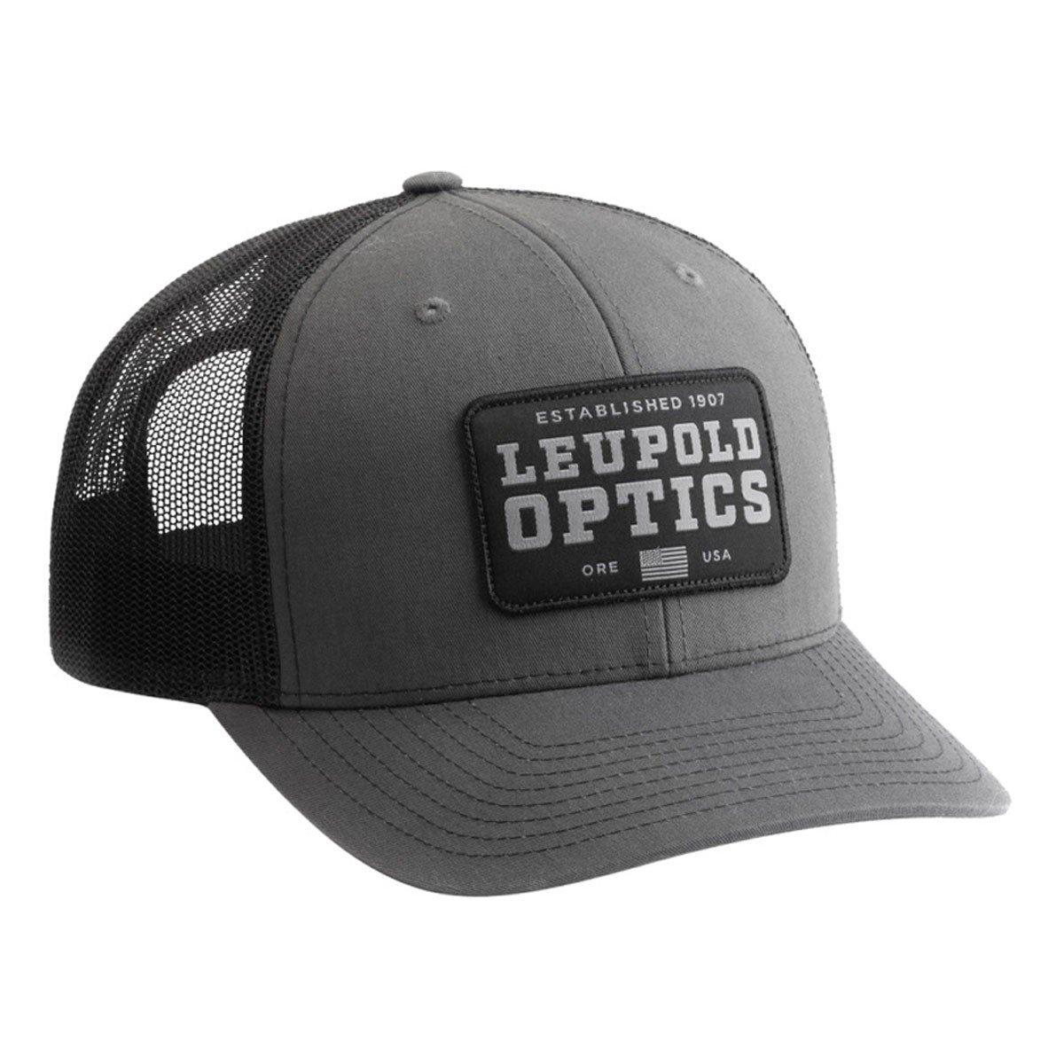 Represent your favorite American manufacturer with this classically patriotic hat. Like all Leupold® hats, the Established 1907 trucker is comfortable, breathable, and made for everyday style. Semi-structured trucker Snapback Black and gray