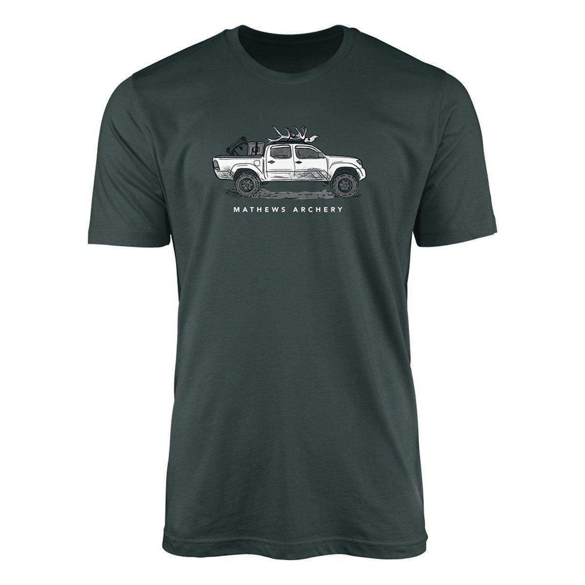 {"reviews":[],"offset":0,"limit":10,"total":0}"Full Description:\nWith its ultra-soft jersey feel and classic cut, the Overland Tee gives you a vintage feel with everyday comfort. Also available in stores, check your local Authorized Mathews Retailer for availability.<br />\n<br />\n<strong>Features:</strong><br />\n60% cotton, 40% polyester blend. Classic cut. Forest Green with custom print.\n\n"