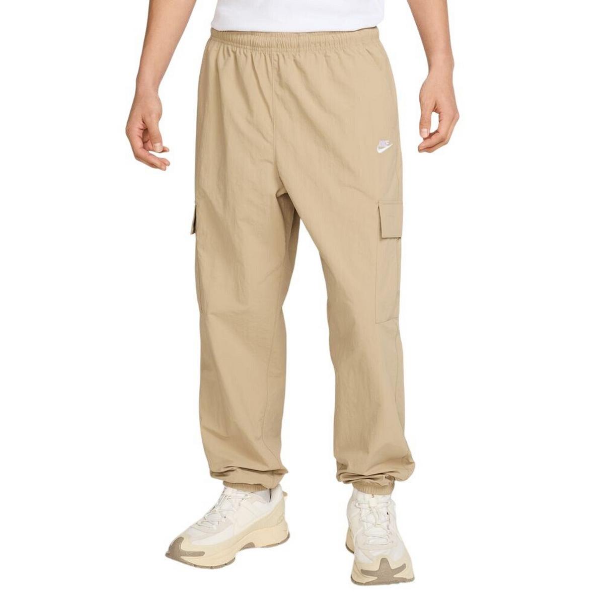 Get a utility-inspired look with the Men's Nike Club Woven Cargo Pants, designed for lightweight comfort and versatile style. Crafted from smooth taffeta, these pants feel light and comfortable for all-day wear. They feature a standard fit that is relaxed through the seat and thighs, tapering to a cuffed ankle for a clean look. An elastic waistband with an internal drawcord and convenient hand pockets ensures a comfortable and secure fit with practical storage for your essentials.
