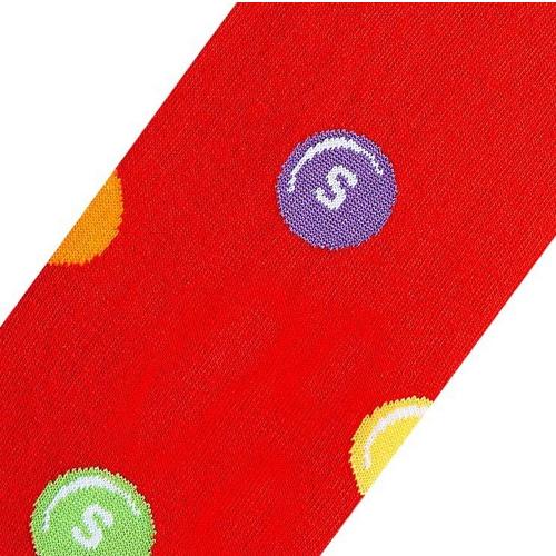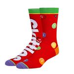 Taste the rainbow with these Skittles Split Men's Crew Socks! These vibrant crew socks feature the iconic Skittles logo in bold white, surrounded by the classic, colorful candies in red, yellow, green, purple, and orange. The fun design is topped off with a rainbow-striped cuff, making this crew socks a perfect match for Skittles lovers. With soft, durable material and eye-catching graphics, these crew socks will keep your feet comfortable and stylish all day. Add a splash of color to your wardrobe and show off your love for Skittles with these sweet crew socks!