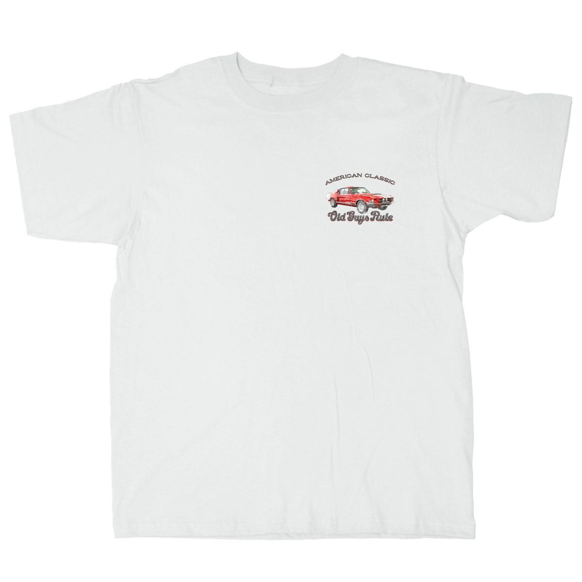 Shirt Text: Old Guys Rule, 1967 Shelby GT500-American Classic Front Design: Mini design on left chest, Back Design: Large design, Fit: Runs true to size