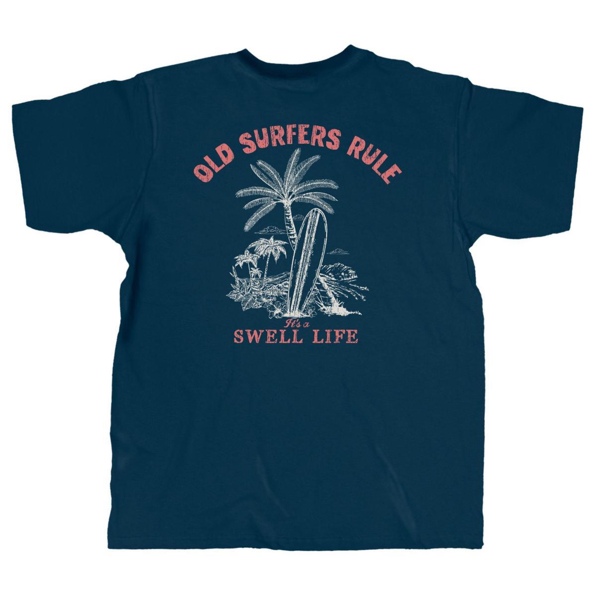 {"reviews":[],"offset":0,"limit":10,"total":0}"Full Description:\nShirt Text: Old Surfers Rule, Living The Swell Life Front Design: Mini design on left chest, Back Design: Large design, Fit: Runs true to size\n\nFeatures:\n\u003cul>\n\u003cli>Graphic Tees\u003c/li>\n\u003c/ul>\n\nSpecifications:\n\u003cul>\n\u003cli>Short sleeve\u003c/li>\n\u003c/ul>\n"
