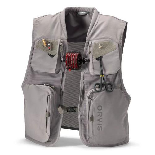 For anglers who prefer the traditional self-contained feel of a well-stocked fly-fishing vest, the Clearwater Mesh Vest offers modern, lightweight construction and subtle, but significant convenience features at a remarkably reasonable price. Based on the classic Clearwater Vest, this mesh version offers hybrid construction combining the breathability of mesh and the durability of a 100% recycled ripstop polyester. Eight pockets—four zipper and four Velcro® for fly boxes and accessories. Two chest fly-drying patches with rubberized tabs for tool docking. Elastic loops for easy tippet bar attachment. Padded collar for all-day comfort. Tri-ring net holder. Fixed buckle closure.