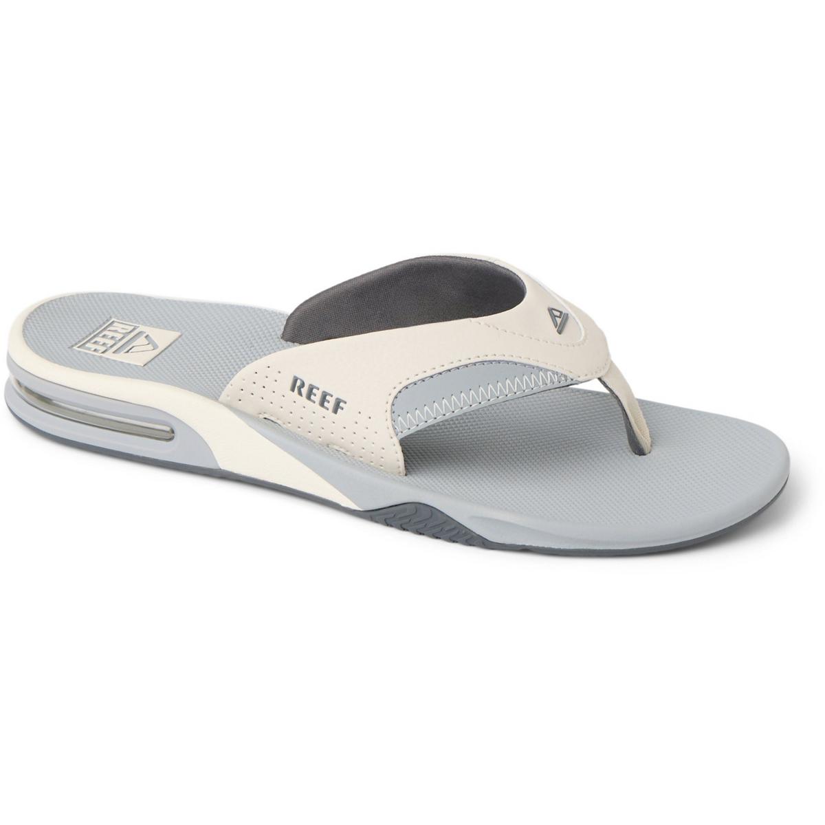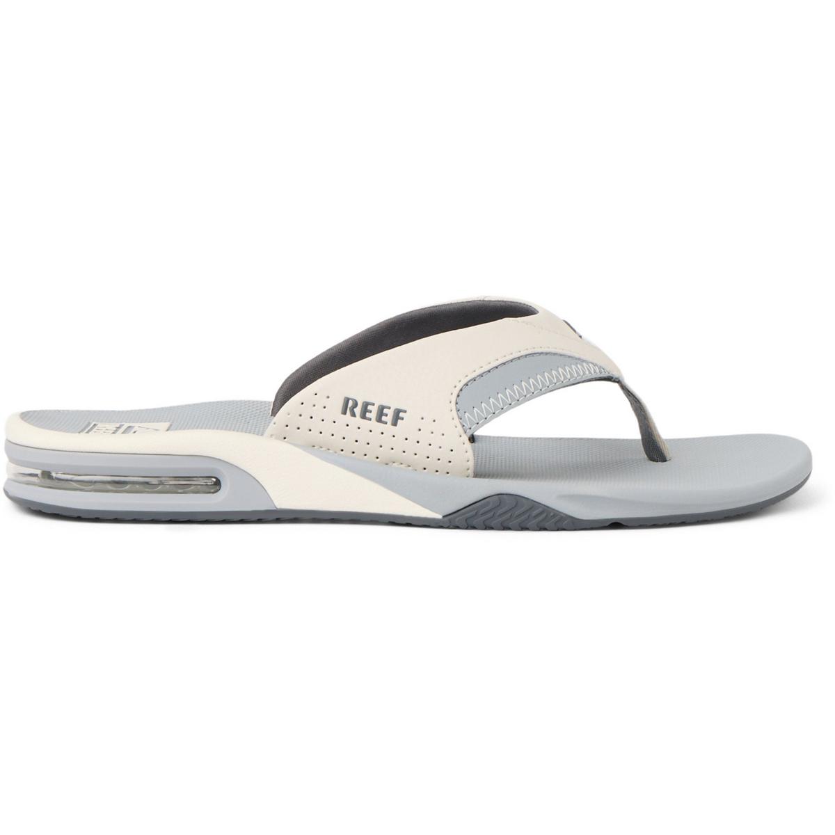 The Men's Reef Fanning Flip Flops are inspired by surfing legend Mick Fanning. Made from synthetic nubuck, the upper on the Reef Fanning Flip Flops are durable and have a molded EVA footbed for additional arch support. To offer next-level comfort, the Reef Fanning Flip Flops for men have an airbag in the heel and padded liner, while the rubber outsole provides plenty of traction on wet, slippery surfaces. With a built-in bottle opener and water-friendly design, the Reef men's flip-flops are ideal to wear to a pool or beach party. Be ready for the next adventure with the Men's Reef Fanning Flip Flops.