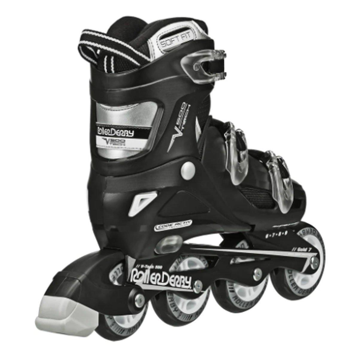 Adults and youth with growing feet will love the V-Tech 500. The inline skates adjust from adult size 6 to 9 at the push of a button. Three buckles make the skates easy to put on and take off, and provide a solid level of comfort and support. The boot and liner have extra ventilation to keep feet cool on long sessions and are washable if you need to freshen them up. The ultra-lightweight design is great for beginner to intermediate skaters who want more freedom and movement in each stride. These skates are breezy and fast, featuring smooth-rolling 76mm urethane Speed Formula wheels that absorb vibrations in the road and have great grip for turning tight corners. They are loaded with high-end Gold-7 Race Rated chrome bearings which are built for speed. Use them indoors or outdoors, on rinks, roads, sidewalks or floors. These adjustable inline skates for teens, children, and adults fit true to adult shoe sizes 6-9.