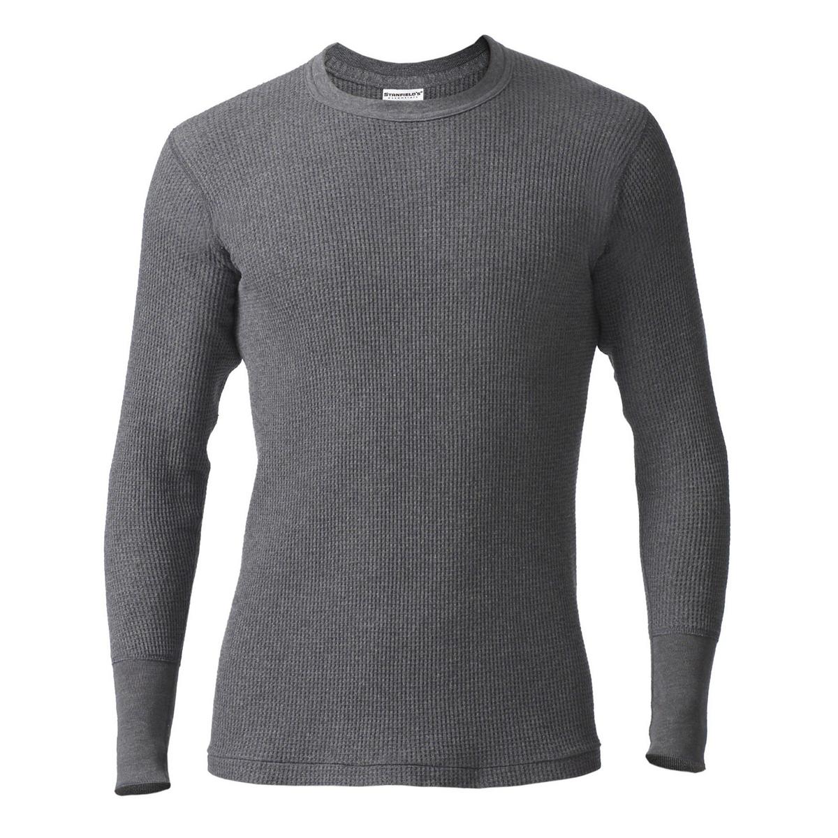 Give winter temps the cold shoulder with the Stanfield's Men's Waffle Knit Long Sleeve Thermal Shirt. Crafted with insulating air pockets to keep you warm, dry, and comfortable, this cotton blend crew neck top is ideal for moderate to very cold weather. Whether you're hiking a mountain trail, or putting in a day at the yard, our standard fit ensures ease of movement, giving your arms restriction-free range of motion. Flatlock neck and shoulder seams maintain shape and fit while a ribbed knit crew neck and reinforced cuffs keep the chill at bay. Machine washable, our durable base layer is in it for the long haul and will maintain its shape through multiple washes. Includes one long sleeve waffle knit base layer shirt. When you've been making quality clothing for as long as we have, you don't just learn from legends, you become one.
