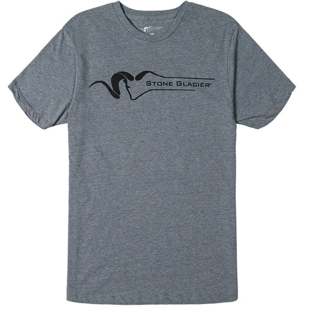 Tri-blend, Charcoal Heathered Stone Glacier T-Shirt is extremely soft and comfortable. The front of the shirt has a 13" Classic Stone Glacier logo and a 7" Classic Stone Glacier logo centered on the top center back.