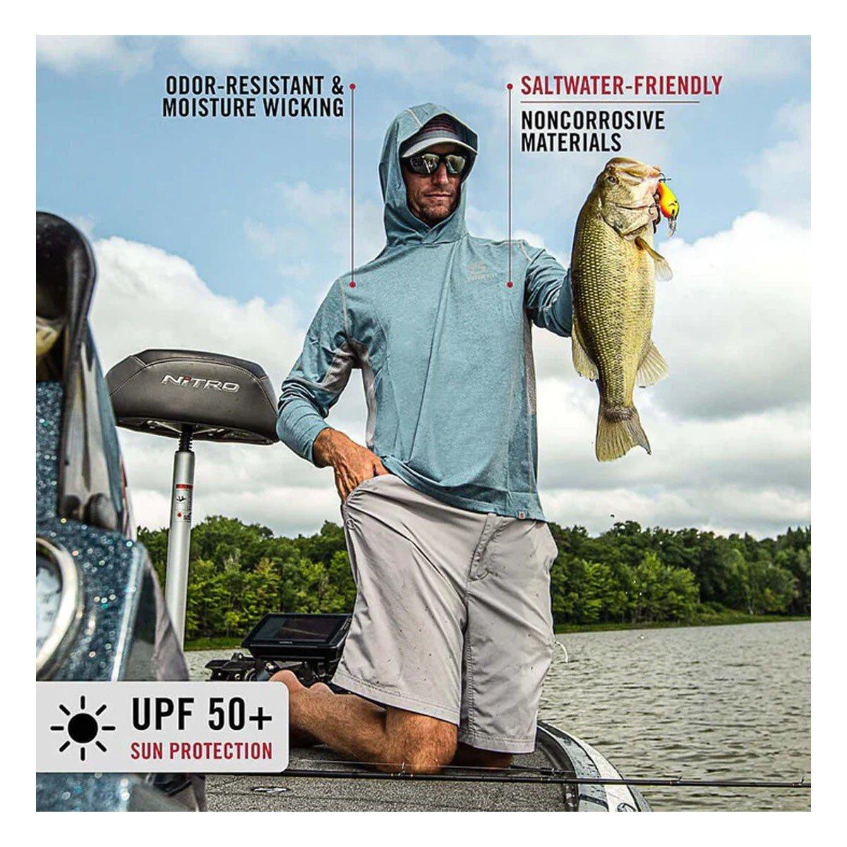 Summer months on the water are precious as the seasons seem to change faster with each passing year. Enjoy warm weather months and take care of yourself while on the water with the Guardian Hoody. Performance features like UPF 50+ sun protection, odor resistance, and moisture management qualities packed into this lightweight fishing shirt give you a soft and comfortable next-to-skin piece that you will want to wear all day long. The 3-panel hood, removable neck gaiter, and integrated thumb loops provide full coverage protection around your head, face, and hands. You can trust the Guardian Hoody will keep you fishing all day long.