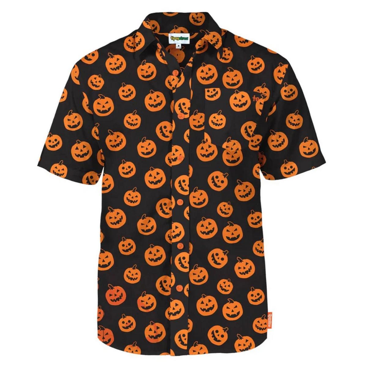 We heard you tried to carve a pumpkin. We also heard it wasn’t the easiest experience. Even if you had to toss your jack-o-lantern due to sheer embarrassment, we have the perfect replacement – about fifty of them, to be exact. Make them forget your feeble attempt and rock the Men's Pumpkin Button Down Shirt this season, printed with emotion-filled jack-o-lanterns all about.