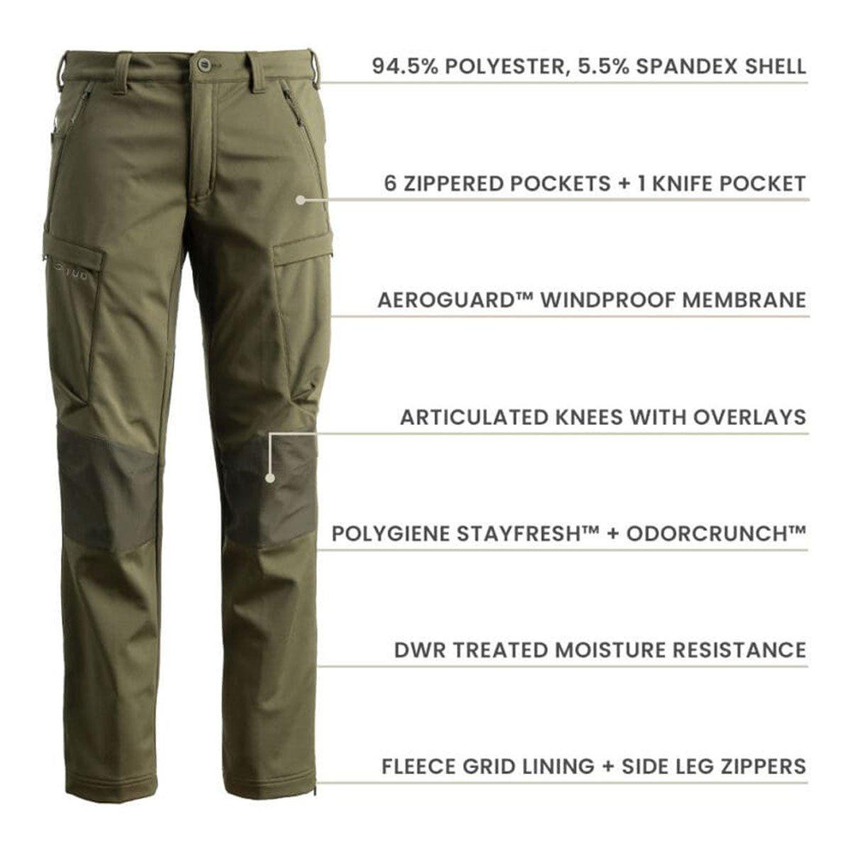 Experience ultimate comfort and convenience with the Aptitude Softshell pant. The poly/spandex shell offers 4-way stretch for mobility while the fleece grid lining provides warmth to keep you comfortable. Articulated knees with abrasion-resistant overlays provide both durability and mobility in the field. The AeroGuard™ Windproof membrane keeps you warm and protected from harsh winds while Polygiene StayFresh™ and OdorCrunch™ technologies help reduce bacteria and inhibit odors, making these pants perfect for long-term wear. Lastly, a DWR treatment to help shed moisture and stains, you can rest assured that these pants will keep you comfortable and focused in any weather condition.