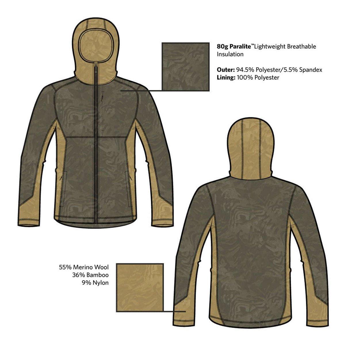 Lightweight and breathable, the Vision Hybrid is the perfect ‘system’ jacket. Use it as an outer shell or as added insulation when the mercury drops. Innovative Polygiene StayFresh™ technology helps reduce odor from bacteria, while OdorCrunch™ captures and inhibits odors. With 80g of insulation in the body and outer sleeves, you’ll stay warm and comfortable in any weather. The highly wind-resistant fabric cuts down harsh gusts, and the DWR treatment helps shed moisture. 2-way stretch material allows for maximum mobility when you need it. Complete with an ergonomic 3-piece hood with Lycra binding, this insulation is designed to move with you throughout your day in the field. Stay fresh, stay comfortable, and stay protected with the TUO Vision Hybrid Jacket.