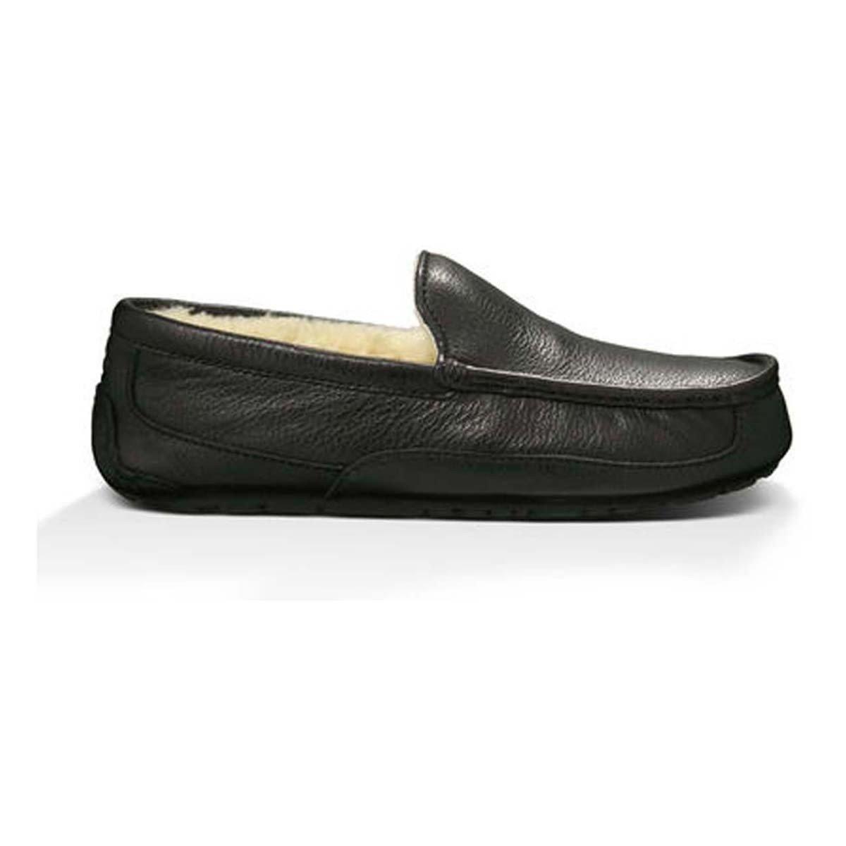 Get up and grab your morning coffee wearing The Men's UGG Ascot Leather Slippers. These UGG slippers offer a luxurious look and maintain a soft comfortable feel wherever you go. Featuring a full-grain leather upper for a sleek style, and a lightweight molded rubber outsole, the Ascot Leather slippers offer plenty of traction for indoor and outdoor use. To keep your feet dry and warm on chilly days, the sheepskin sockliner naturally wicks away moisture. Plus, the foam footbed ensures cushioning comfort with each step. Whether you're going to work, relaxing at home, or running errands, stay stylish and comfortable with the Men's UGG Ascot Leather Slippers.