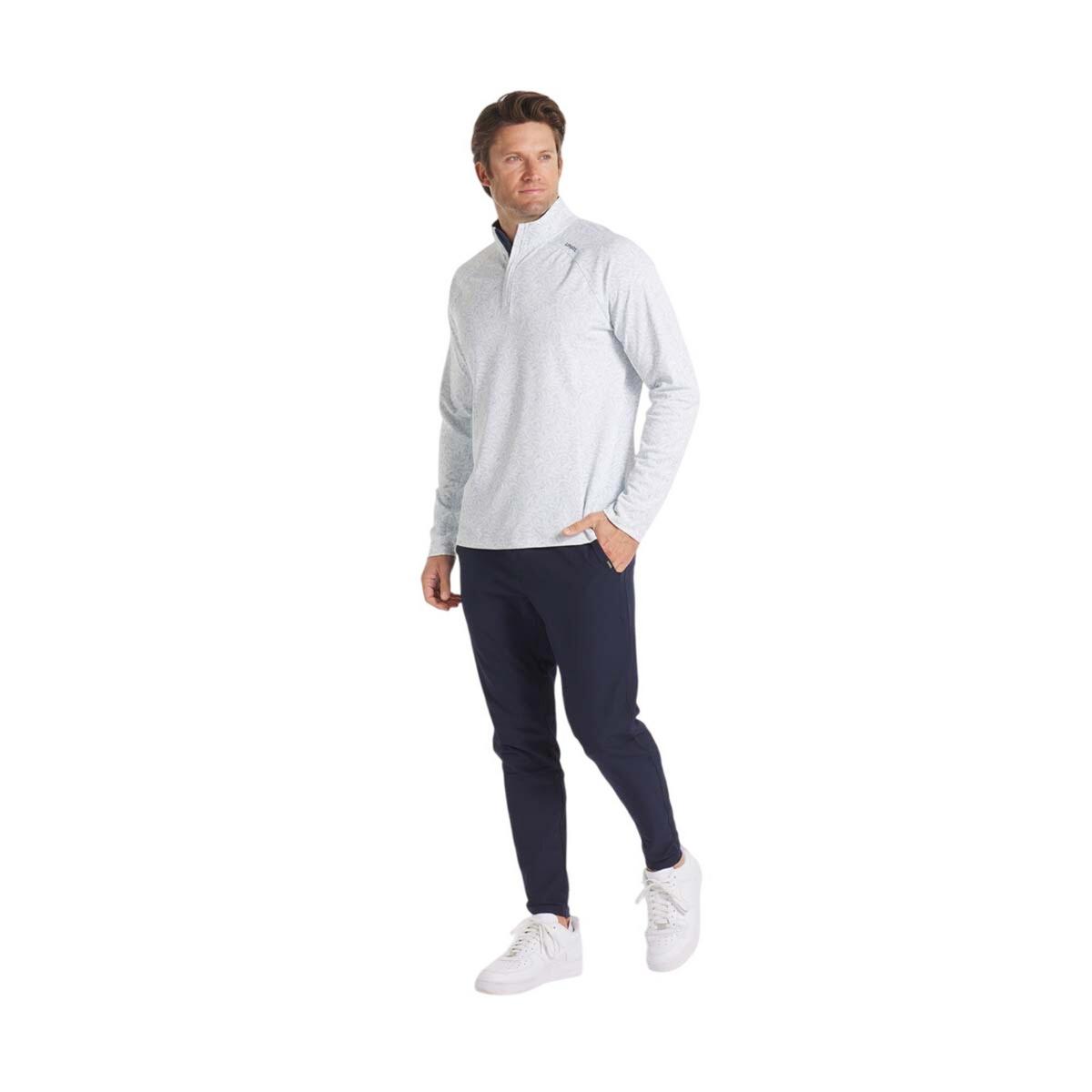 The Men's UNRL Highlands Long Sleeve 1/4 Zip is a must-have layer crafted from a high-performance fabric. This lightweight quarter zip is engineered with a tailored look, featuring contoured seam lines at the shoulders and throughout the body, ensuring a sharp appearance while providing an optimal fit. Designed for full range of motion, the raglan cut sleeves allow for unrestricted mobility, making it an excellent choice for the golf course or any active day. The breathable performance fabric offeres four-way stretch, moisture-wicking technology with odor control, and a durable collar that maintains its shape wash after wash. Complete with UPF 50+ sun protection, the Men's UNRL Highlands delivers comfort, style, and superior on-course functionality.