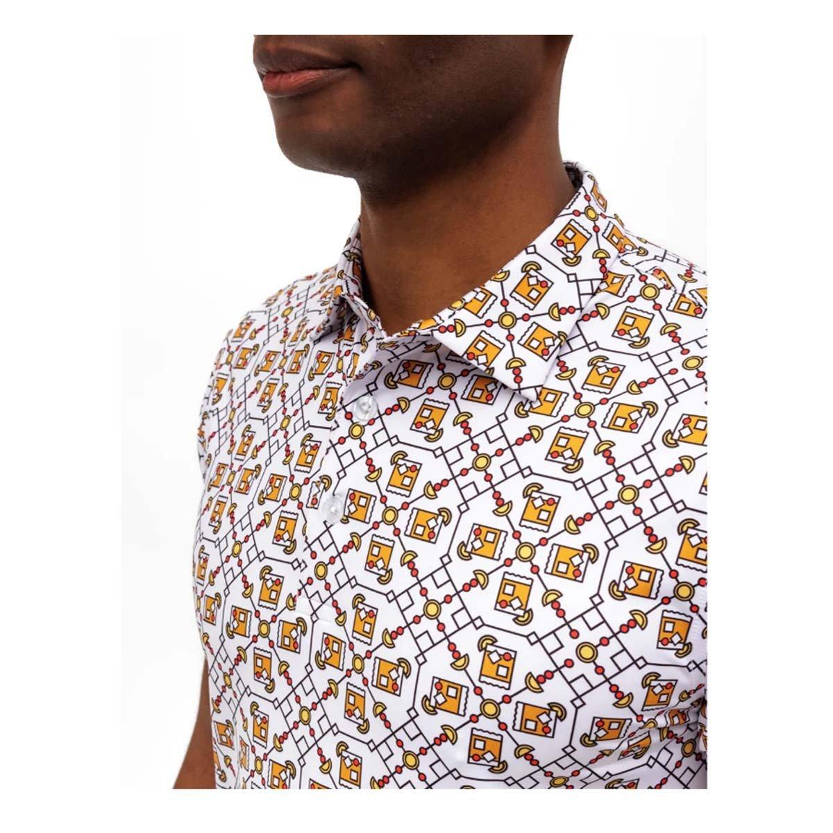 Add flavor to your game with the Men’s Waggle Golf Provisions Print Polo. Featuring a playful, food-and-beverage-inspired design, this polo serves up bold style and all-day comfort on and off the course. The premium stretch fabric offers a smooth, breathable feel that moves with your swing, while moisture-wicking technology keeps you cool under pressure. Finished with a modern athletic fit and Waggle’s signature details, the Provisions Print Polo is perfect for golfers who like their look as fresh as their drive.