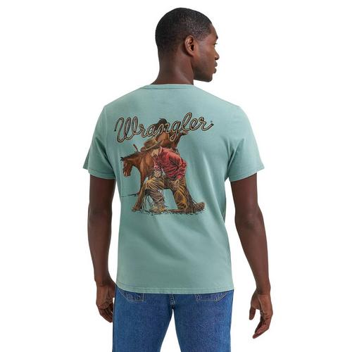 Enjoy trending style with the Men's Wrangler Kneeling Cowboy Graphic T-Shirt. Featuring bold graphics and an on-trend cut, the Men's Wrangler Kneeling Cowboy Graphic T-Shirt pairs easily with your favorite pair of jeans, shacket, or flannel.