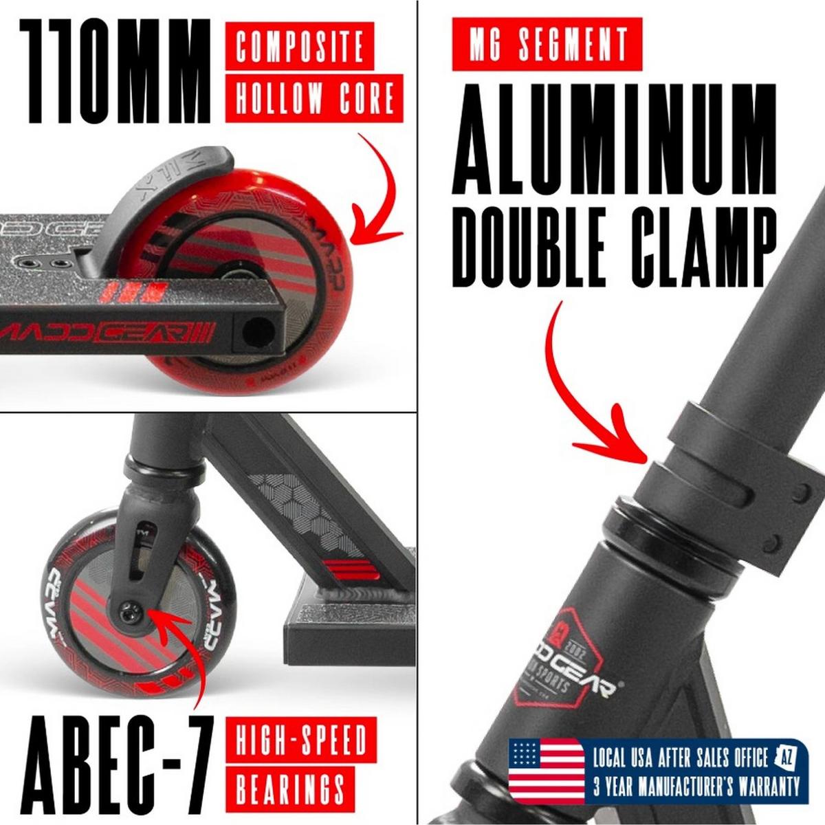 Crafted from a strong extruded aluminum deck and fitted with a durable one-piece steel T-bar handlebar, the MG3 offers a perfect balance of strength and control. The larger 110mm polyurethane wheels and high-speed ABEC-7 bearings provide fast, stable rolling across sidewalks, ramps, and parks.