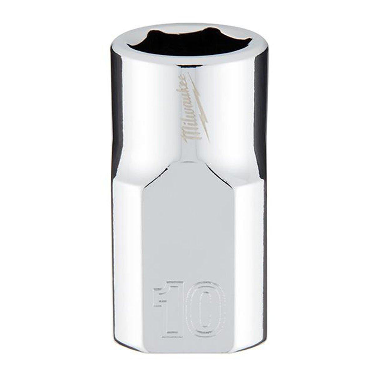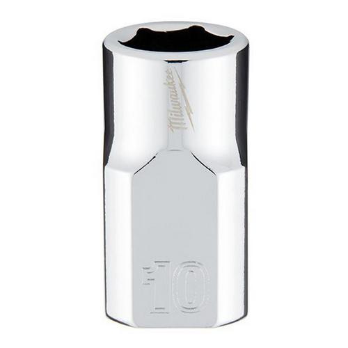 The Milwaukee 3/8 in. drive 10mm metric 6-point socket was designed from the ground to be part of the most versatile socket family. The innovative socket design has four parallel flat sides, which deter rolling and are wrench-compatible. Socket sizes are stamped into the flats for improved easy-to-read visibility. Optimized socket geometry helps reduce bolt rounding and stripping.