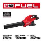Our M18 FUEL™ Dual Battery Blower meets the performance, durability, and ergonomic needs of landscape maintenance professionals. Our blower provides the Highest Constant Power by delivering a power output higher than all handheld gas blowers and maintaining that power level throughout the full charge of the battery. The POWERSTATE™ Brushless Motor delivers 600 CFM and 145 MPH, providing the ability to take on demanding applications like clearing wet leaves. The advanced electronic package allows the blower to reach Full Throttle in Under One Second, boosting control and productivity. The ambidextrous variable speed sliding lock on lever provides the ability to easily lock in the blower to the desired clearing power. This speed control mechanism, combined with the optimized balance, provides the Best Clearing Control in its class. MILWAUKEE® REDLINK PLUS™ Intelligence has total system communication between the tool and battery for unmatched levels of performance, protection, and productivity. The blower requires (2) M18™ REDLITHIUM™ Batteries for operation and is optimized to be used with M18™ REDLITHIUM™ HIGH OUTPUT™ batteries. The M18 FUEL™ Dual Battery Blower is part of the M18™ System, fully compatible with over 200 solutions.