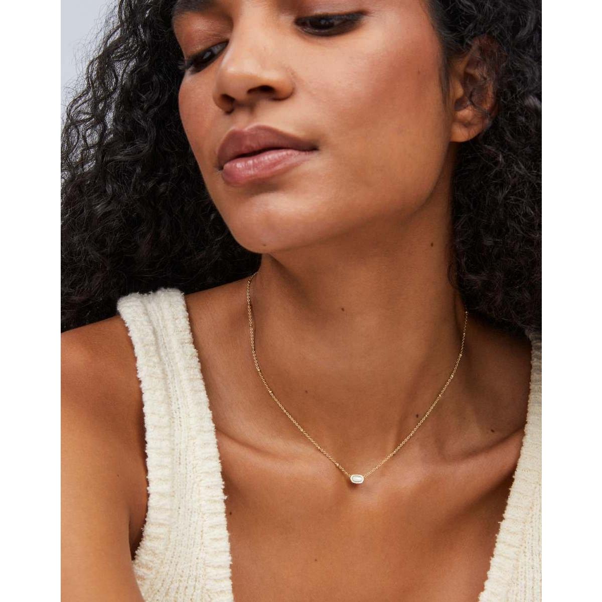 Our bestselling icon goes daintier (and cuter!) than ever in the Mini Elisa Gold Satellite Short Pendant Necklace in Ivory Mother-of-Pearl. Set on a textured satellite chain, this take on our signature shape is perfect for those with a more minimal aesthetic or anyone wanting to add some color to their layers.