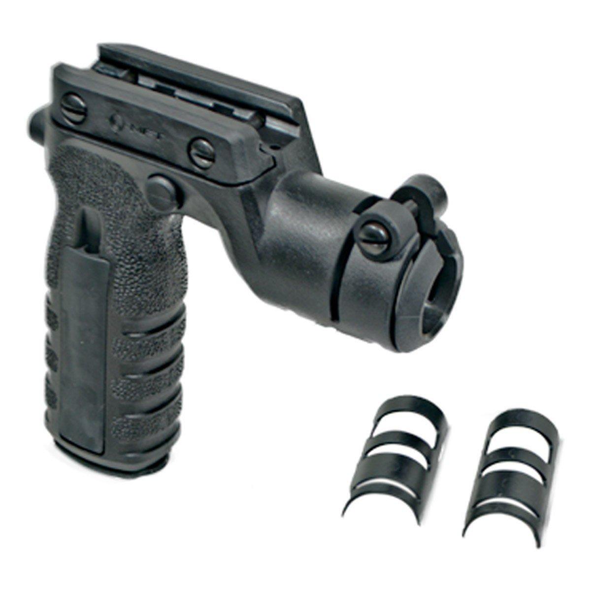The Mission First Tactical ReactTM Torch and Vertical Grip is a combination of a vertical grip and an illumination mount. This vertical grip/torch mount combo is compatible with lights and lasers with diameters of 0.75 inches, 0.825 inches, and one inch. A thumb switch allows you to activate wired-switch or rear-activated lights, and a lock-out switch prevents unwanted or accidental light activation. The vertical grip features grooved surfaces to provide a secure hold for improved muzzle control and accuracy. The flat, no-slip bottom provides a stable platform during supported shooting, while the watertight storage compartment features a battery sled to prevent rattle. Designed for convenience, the ReactTM Torch and Vertical Grip offers an easy way to add both a torch mount and vertical grip to your rifle.