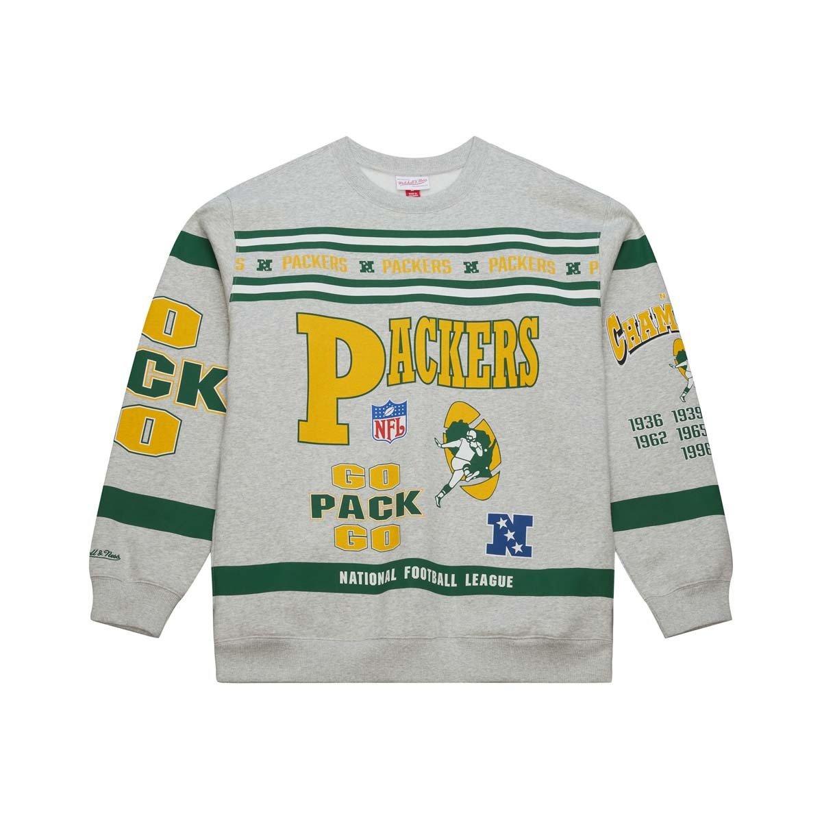 Mitchell and Ness Green Bay Packers All Over Print Vintage Crewneck