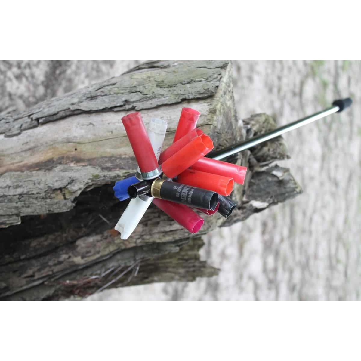 MOJO® certainly changed the world of picking up your empty shotgun hulls when they introduced their Revolutionary Pick Stick, a magnetic adjustable shaft specially designed to cause empty shotgun hulls to "walk" up the side and thus allow one to pick up many more. Everyone should pick up their empties before they leave the field. It's the right thing to do and will go a long ways toward getting invited back to that land. NOW, MOJO® has developed the same great advantages in a highly portable version which utlilizes double shock cord snaps allowing it to collapse into 10 1/2" sections complete with mesh bag and fits in the pocket or blind bag. Perfect to take to the field with you.