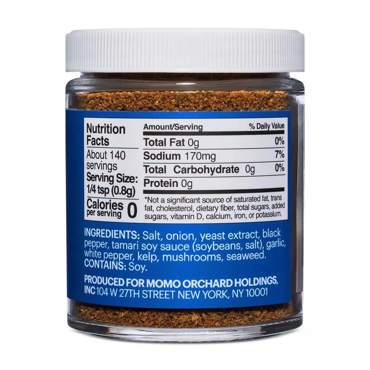 {"reviews":[],"offset":0,"limit":10,"total":0}"Full Description:\nMomofuku Seasoned Salt is our answer to 10 years of flavor research in the Momofuku Goods Lab. <br><br>Savory Seasoned Salt is supercharged salt and pepper. It mixes kosher salt with garlic, tamari, kelp, and mushroom powder. We use it on grilled steaks and vegetables.<br><br>Each jar contains 4oz of Savory Seasoned Salt.\n\nFeatures:\n\u003cul>\n\u003cli>3.9 oz\u003c/li>\n\u003c/ul>\n\nSpecifications:\n\u003cul>\n\u003cli>garlic\u003c/li>\n\u003cli>salt\u003c/li>\n\u003cli>onion\u003c/li>\n\u003cli>Spices\u003c/li>\n\u003cli>Yeast Extract\u003c/li>\n\u003cli>Pepper\u003c/li>\n\u003cli>tamari (water\u003c/li>\n\u003cli>organic soybeans\u003c/li>\n\u003cli>organic alcohol)\u003c/li>\n\u003cli>kelp\u003c/li>\n\u003cli>mushroom\u003c/li>\n\u003cli>seaweed. contains: soy\u003c/li>\n\u003c/ul>\n"